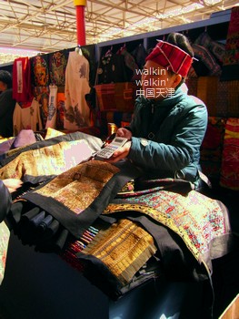 貴州や雲南などの少数民族衣装やその布を売る店です。