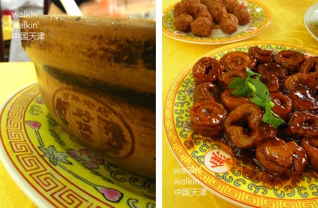 写真右は、九转肥肠(jiu3 zhuan3 fei2 chang2 ;九転肥腸)。