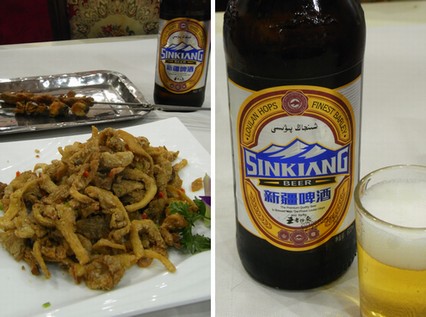 【上の写真右】 新疆ビール(12元)。やっぱりご当地を頼んじゃう。