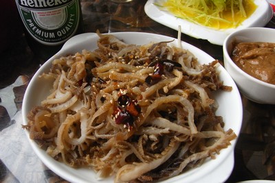 羊のセンマイの湯通し。北京名物。胡麻醤につけて食べます。
