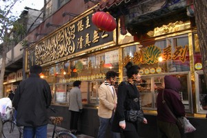牛羊肉、惣菜、菓子を窓口販売。(清真なので豚なし。)