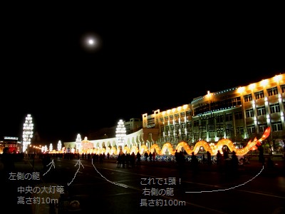 一番の圧巻は、楊柳青広場南沿いの灯篭。