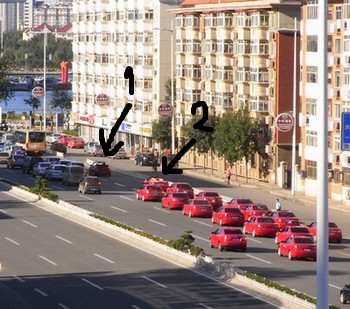 私もこのような赤い車(後続車)に乗せてもらったことがある。