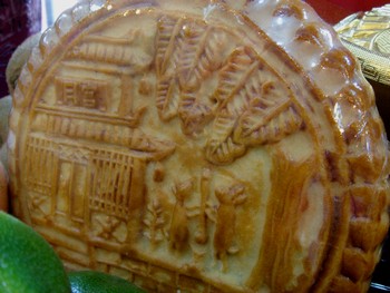 ↓顔より大きな月餅に、兎と月の模様。↓