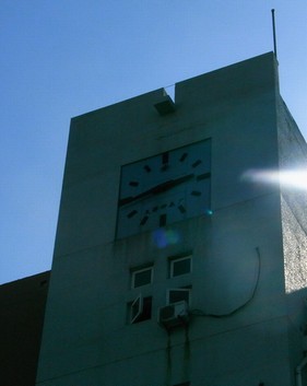 見上げた天津市第五十四中学の時計が、天津钟表厂製でした。