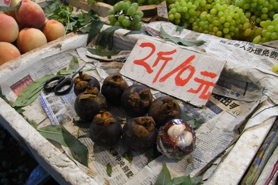 もう季節は終わりだけど、マンゴスチン(山竹shan1zhu2)を買った。