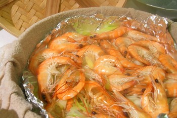 活きたエビを料理するのも初めて。シンプルに、蒸す!
