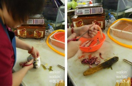 天津では魚介系、なかなか美味しいものに出会えなかったけれど、新鮮そうなお魚~。