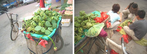 「こうして食べるんだよ」上手に花托を剥いていきパクっと食べたおばさん。
