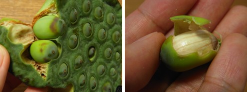 その花托に埋まっている実(中国語:莲子)を食べるらしい。