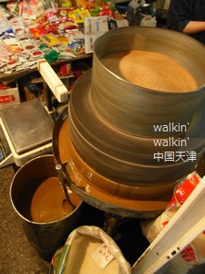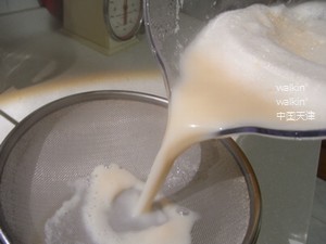 前夜、大豆を一晩水に浸け、翌朝、新しい水と戻した豆を豆浆机に入れ、