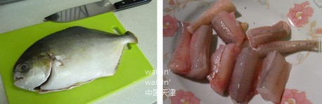 ↓ まな板の上のマナガツオ。と、テナガミズテング。