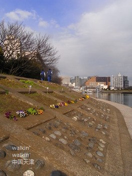 勝島運河沿いを歩くと、その土手が「しながわ花海道」。