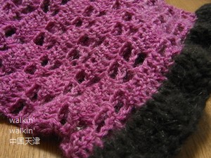 そこに編んだマフラー、じゃなくって、ネックウォーマー、を入れた。
