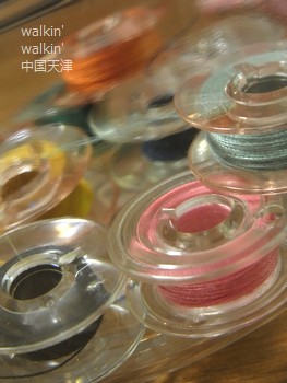 糸の色を変える度に1個ずつ増えていく、色トリドリの下糸ボビン。