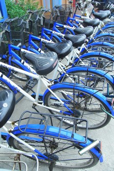 自転車の荷台で。